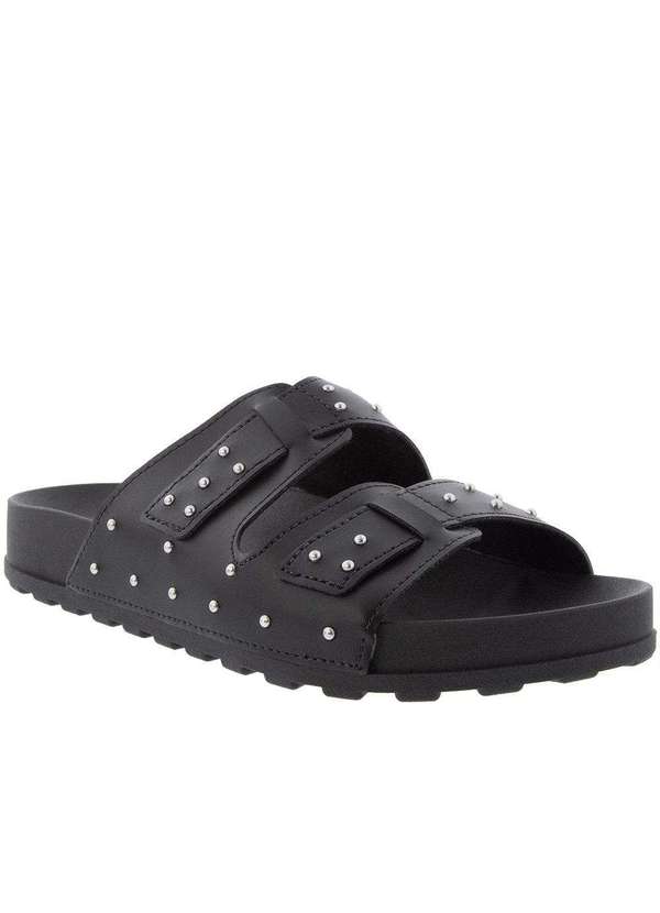 Moleca - Sandália Moleca Flatform Tratorada Tiras Aplicações Preto Preto