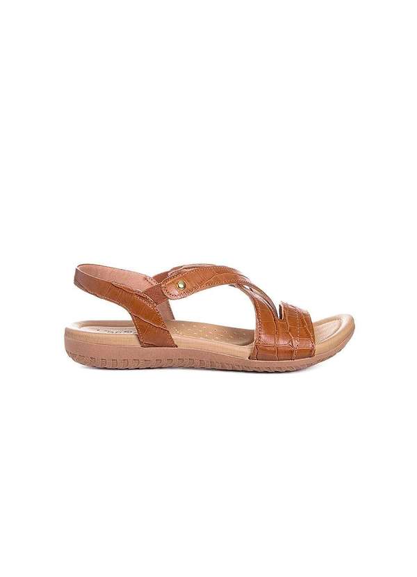 Usaflex - Sandália Papete Usaflex Couro Croco Caramelo Marrom