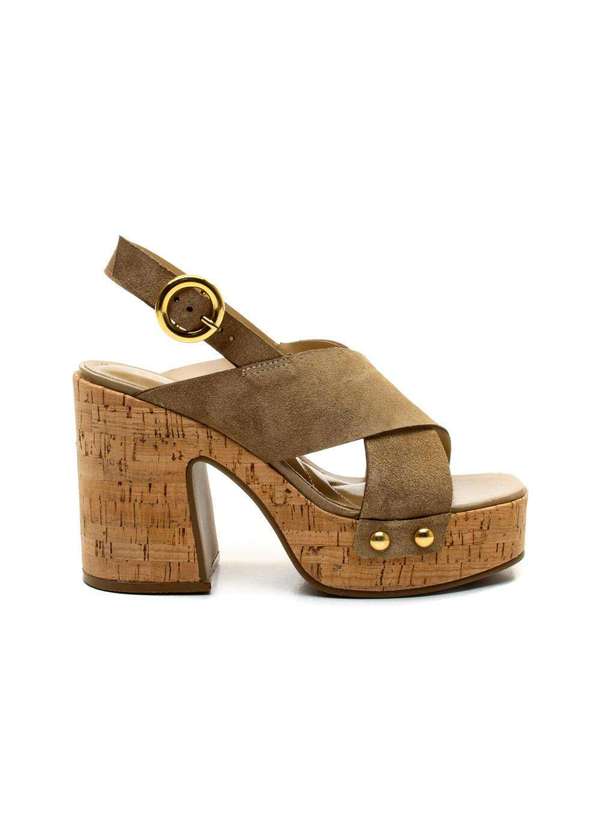 Sandália plataforma confeccionada em couro com acabamento em camurça, une imponência e charme em um design moderno. As tiras largas cruzadas garantem sustentação e estilo, enquanto o salto alto plataforma revestido em cortiça traz leveza visual e conforto ao caminhar. O fechamento com fivela lateral dourada adiciona um toque sofisticado, assim como os rebites metálicos na base, que conferem um ar contemporâneo ao modelo. Ideal para looks que pedem atitude e elegância em igual medida. Características Material: Couro Cor: Nude ( Hazelnut ) Altura do salto: 11,0cm .
