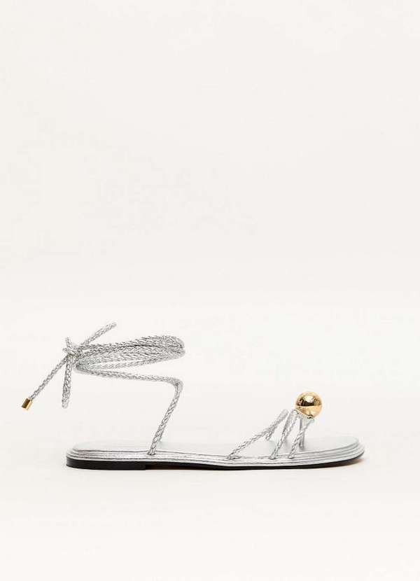 Lança Perfume - Sandália Rasteira com Tiras Trançadas e Esfera Lp A0008