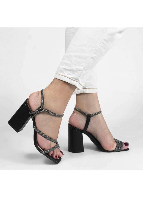 Zatta Calcados - Sandalia Salto Bloco Alta Brilho Catarina Preto