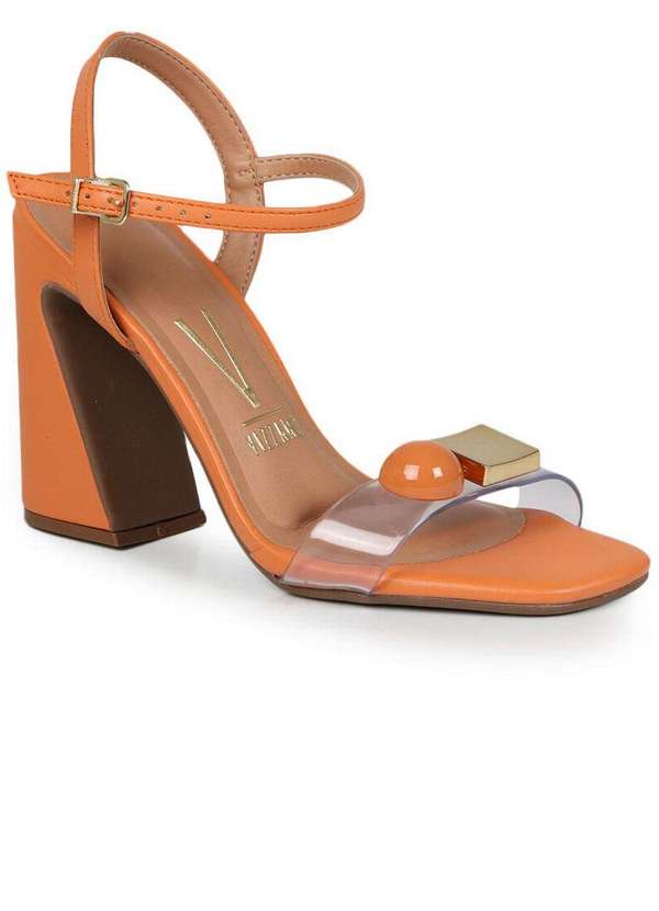 Vizzano - Sandália Salto Feminino Vizzano Enfeite e Vinil Laranja
