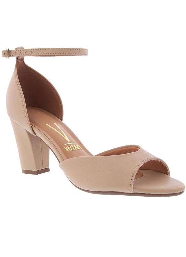 Vizzano - Sandália Vizzano Salto Grosso Detalhe Decote Bege Bege
