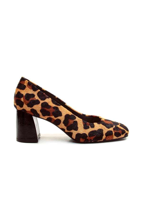 Cecconello - Scarpin Couro Pelo Onça Salto Bloco Médio Cecconello 2442013-2 Onça/Camel