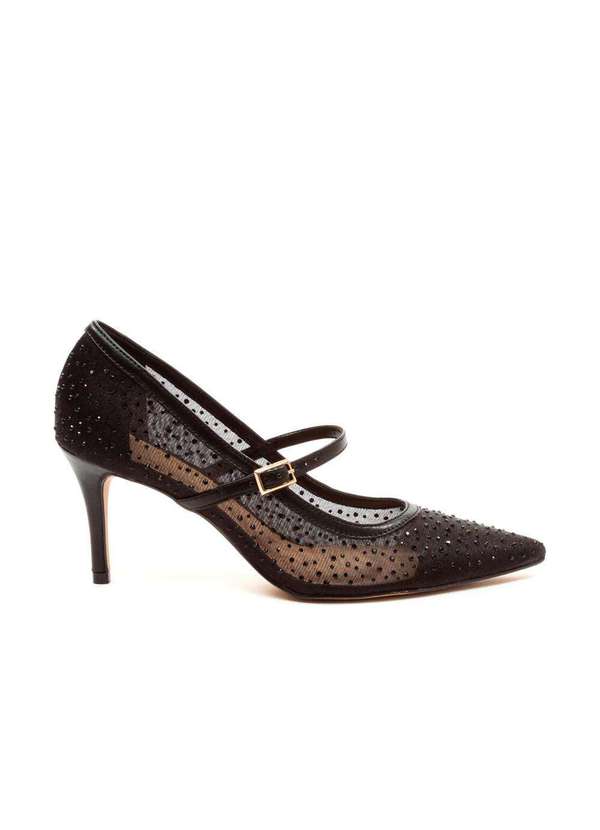 Este scarpin é a combinação perfeita de elegância e brilho, ideal para quem busca um toque sofisticado e moderno. Confeccionado em tela com cristais encrustados, a peça exala glamour e destaca o visual com um toque de luxo. Os detalhes em couro e as tiras com fivelas como adornos adicionam um charme adicional e uma estética refinada ao design. Com salto médio e bico fino, oferece conforto e um ajuste impecável, garantindo estilo sem abrir mão da praticidade. Uma escolha que transforma qualquer look, tornando-o mais sofisticado e impecável para ocasiões especiais. Características Material: Couro ( Tela ) Cor: Preto Altura do salto: 7,5cm .