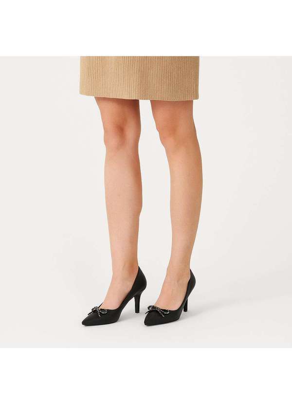 Comfort - Scarpin Laço Strass Preto Preto