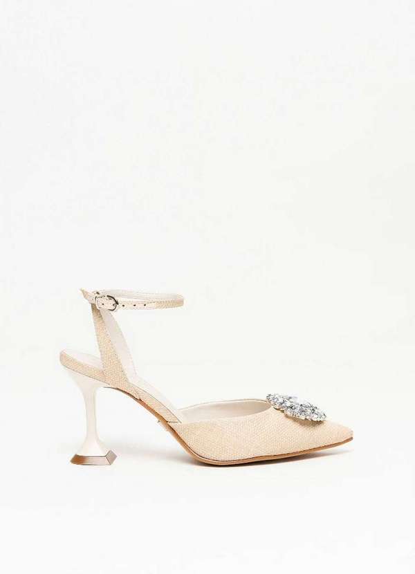 Composição : Cabedal: tecido lurex / forro: tecido poliéster / palmilha: sintético pu / metais: zamac / solado: laqueado