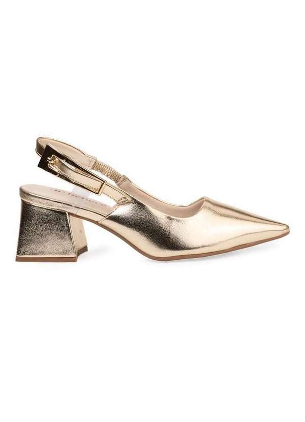Bebecê - Scarpin Slingback Bebecê Salto Bloco Verniz Toffee Dourado