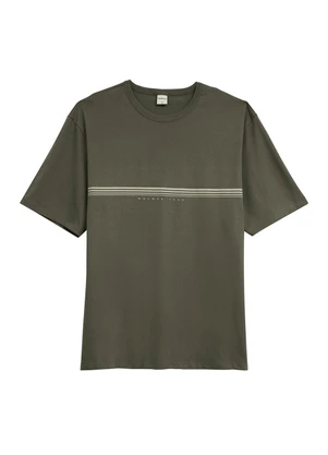 Malwee - Camiseta Regular Listras em Malha Verde Oliva - MALWEE