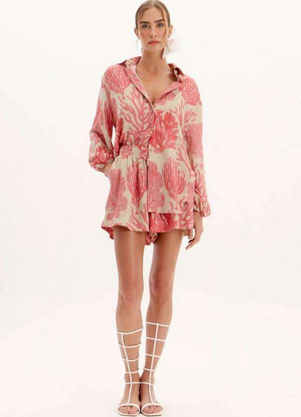 O short curto estampado é perfeito para os dias de verão. Confeccionado em linho com modal, possui cintura alta e elástico no cós, garantindo conforto e caimento impecável. Uma peça leve e sofisticada para compor looks frescos e estilosos.