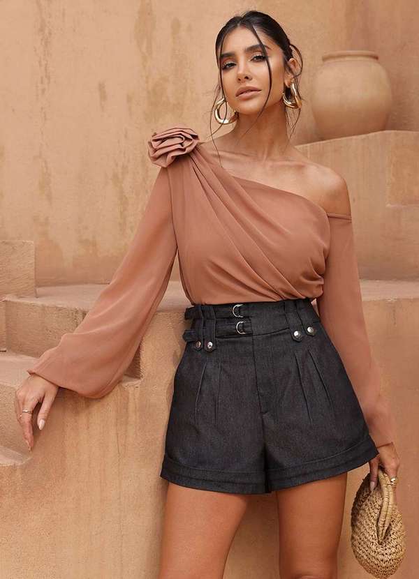 Short Dot Clothing Ayla Sarja C/ Botão Metal Short cintura alta, detalhe de fivela dupla no cós e passante com botões metalizados, pregas frontais, fechamento em zíper na parte da frente, bolsos laterais funcionais, barra italiana, não possui forro. Tecido: Alfaiataria Sarjada Composição: 76% Algodão 22% Poliéster 2% Elastano TABELA DE MEDIDAS: TAMANHO CINTURA QUADRIL COMPRIMENTO PP 70 cm 102 cm 39 cm P 73 cm 105 cm 42 cm M 76 cm 108 cm 45 cm G 79 cm 111 cm 58 cm * modelo usa PP/36 FEITO NO BRASIL