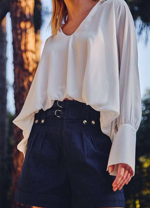 Dot Clothing - Short Dot Clothing Ayla Sarja c/ Botao Metal Azul