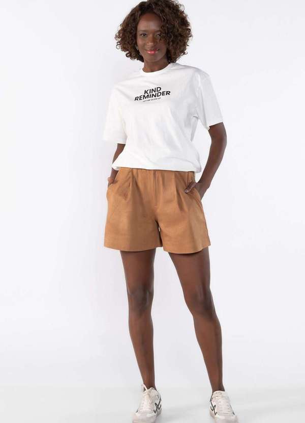 Short em suede com pence e bolsos com elástico na cintura Dica: Usar com camisa e sapatilha Composição:98%poliester 02%elastano Modelo usa:Tamanho P - Medidas 1,75 de altura | Peso: 59k