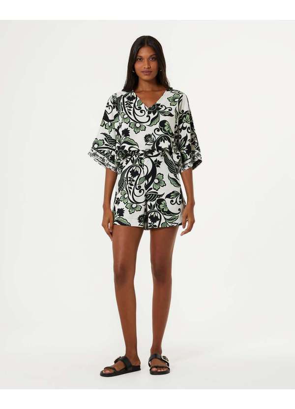 Zinzane - Short Estampado Arabesco Floral - Areia Bege