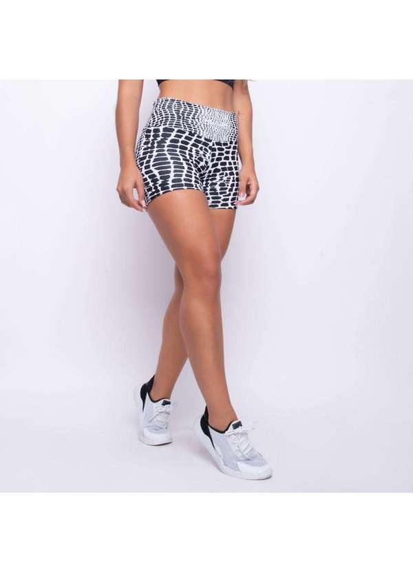 Honey Be - Short Fitness Jacquard Croco Preto Sh203 Preto