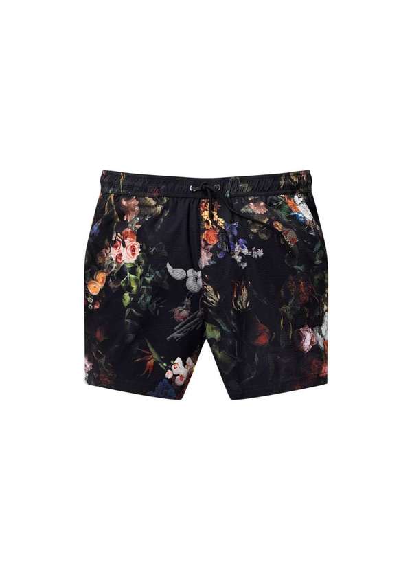 Reserva - Short Praia Textura Floral Urbano Reserva Preto