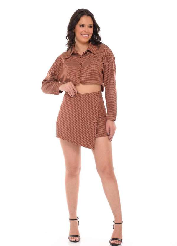 Razon Jeans - Short Saia Feminino Frente Única com Botão - Vermelho