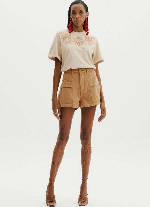 Amarante do Brasil - Short Sarja Mom Super High Bege
