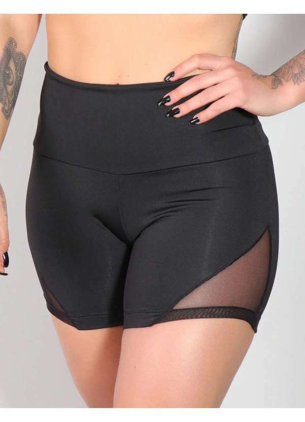 Fitmoda - Shortinho Fitness Feminino com Recortes de Tule Preto