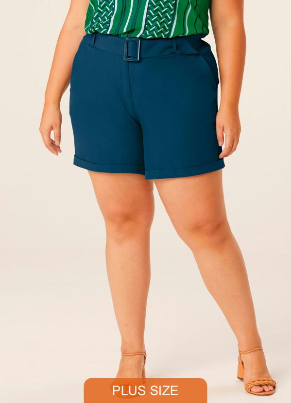 Malwee Plus - Shorts Azul Tradicional em Crepe Plus