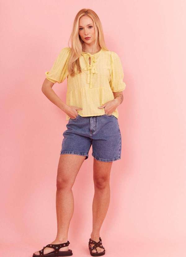 Shorts jeans de cintura alta, com caimento impecável e toque super confortável. Ideal para o dia a dia, traz leveza ao visual e combina com diversas composições, do casual ao despojado. Modelo Luiza usou tamanho P Medidas Luiza: Quadril 96 / Cintura 70 / Busto 86 Modelo Jes usou tamanho G3 Medidas Jes: Quadril: 122 / Cintura 100 / Busto 110 OBS: Para esclarecer suas dúvidas sobre tamanhos, aproveite nosso provador virtual! Composição: 100% algodão