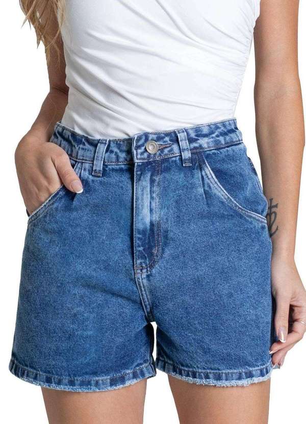 Shorts confeccionada em jeans. Modelagem soltinho. Cintura média Fechamento com botão e zíper Bolsos frontais faca e bolsos traseiros funcionais Barra simples Tecido: Jeans Tipo de lavagem: Azul Cor: Azul médioComposição: 100% ALGODÃO