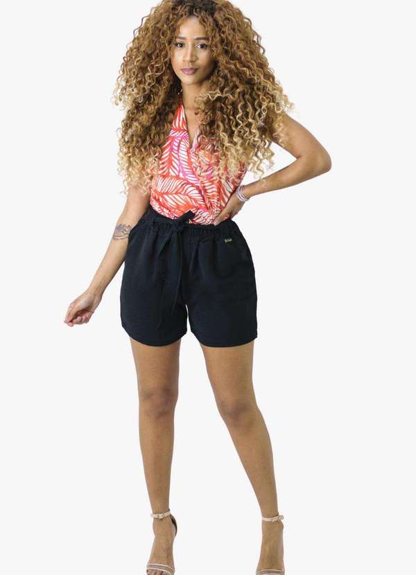 Looks Catwalk - Shorts Laço com Bolso Tendência Bermuda Moda Feminina - Preto
