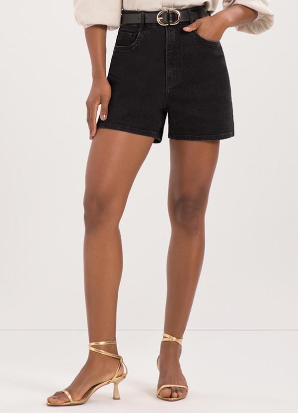 Lunender - Shorts Mom Jeans e Chapa Barriga Preto