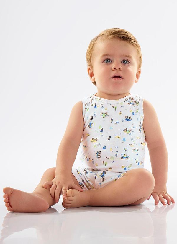 Up Baby - Shorts para Bebê Menino em Suedine Branco