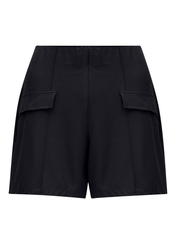 Lunender - Shorts Reto Cintura Alta Lapelas Crepe Preto