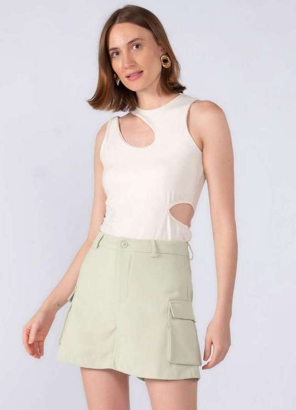 Short saia cargo. A peça contém comprimento curto, bolsos laterais e fechamento frontal em botão e zíper. Dica: Use com camisetas ou regatas para um visual descontraído e estiloso. Composição: 100% Poliester. Forro: 100% Poliester.