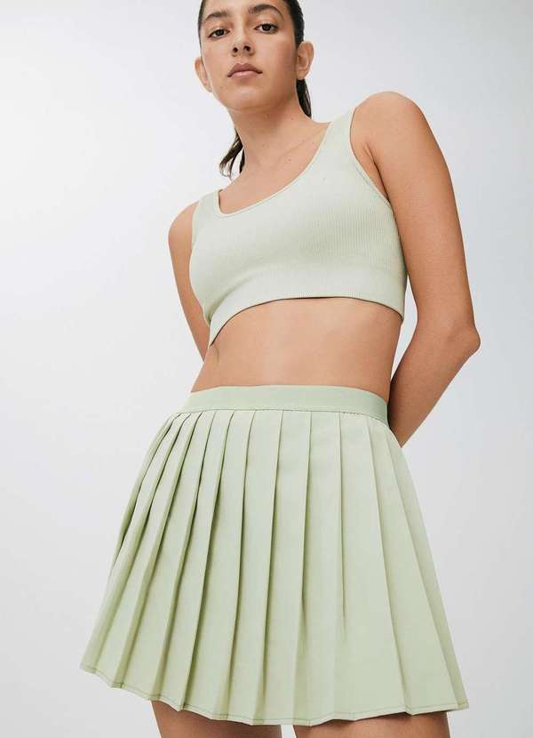 Com cintura alta e shape funcional, esse shorts saia plissado é perfeito para treinos e atividades ao ar livre. Confeccionado em tecido com secagem rápida e elasticidade, garante liberdade nos movimentos e conforto o dia todo. Conta ainda com tecnologia Easy Care, que não amassa com facilidade, traz mais praticidade para sua rotina ativa. Detalhes da peça: Malha com elastano Modelagem reta Cintura alta Cós com elástico Secagem rápida Não amassa com facilidade