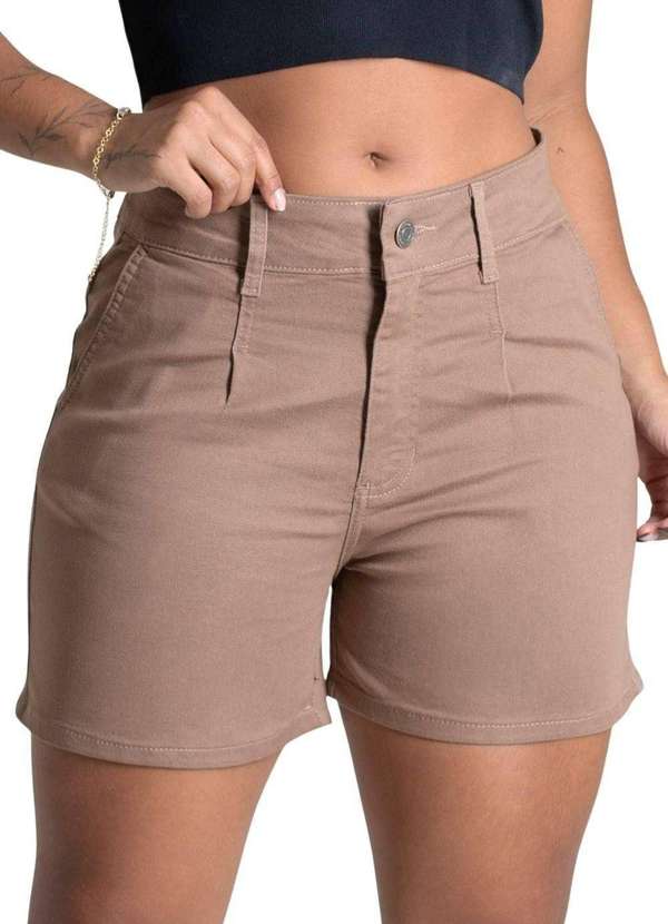 Shorts confeccionada em sarja. Modelagem soltinho. Cintura média Fechamento com botão e zíperBolsos frontais e bolsos traseiros funcionais Barra simples Tecido: Sarja Tipo de lavagem: Color Cor: MarromComposição: 73% ALGODÃO 24% POLIÉSTER 3% ELASTANO