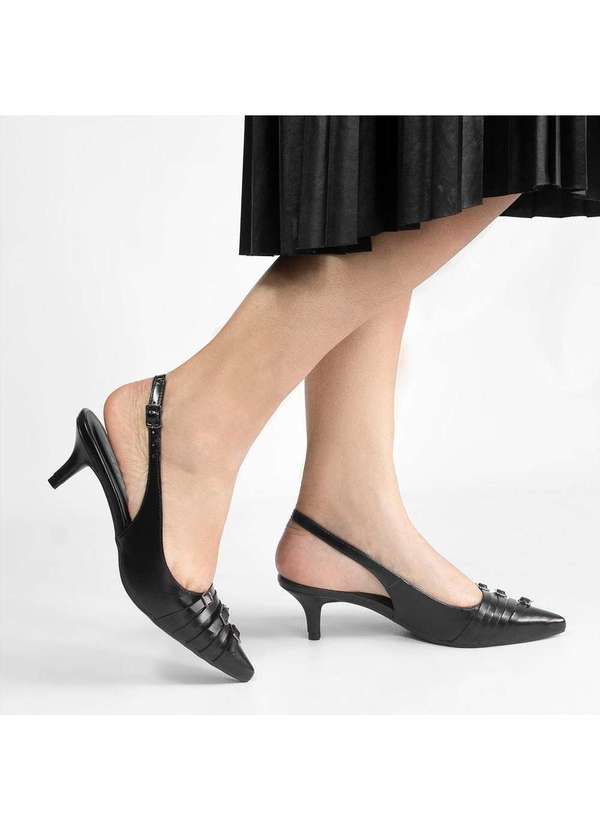 Zatta Calcados - Slingback Bico Fino Tres Fivelas Frontais Gloria Preto