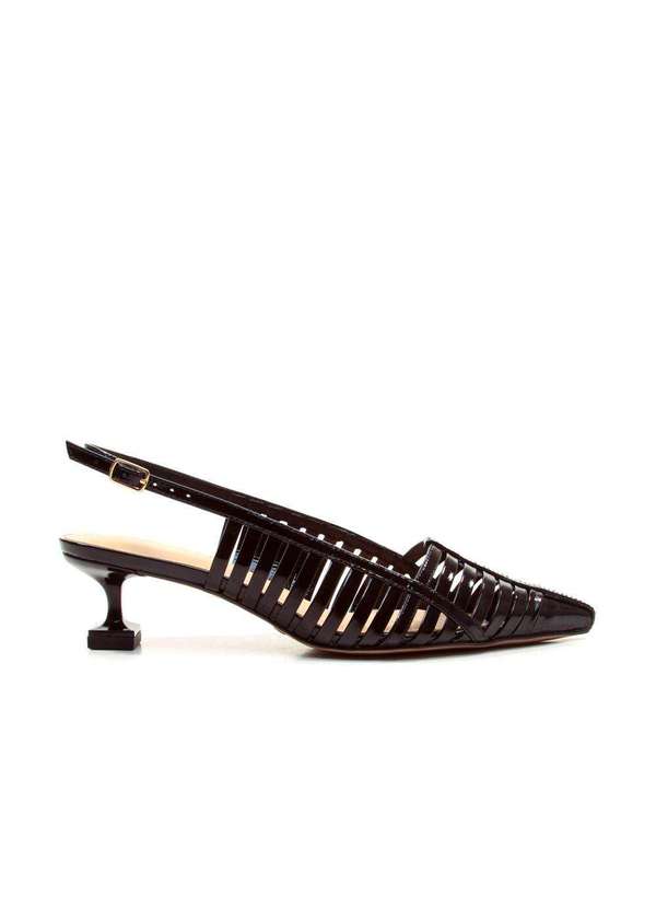 Elegante e moderna na medida certa, esta slingback é confeccionada em couro com tiras que criam um efeito gráfico leve e arejado. O bico fino alonga a silhueta, enquanto a tira traseira ajustável com fivela garante um encaixe delicado e confortável. O salto baixo em formato escultural finaliza a proposta com um toque de originalidade e sofisticação. Ideal para looks urbanos que valorizam estilo, conforto e um design diferenciado. Características Material: Couro Cor: Preto Altura do salto: 5,0cm .