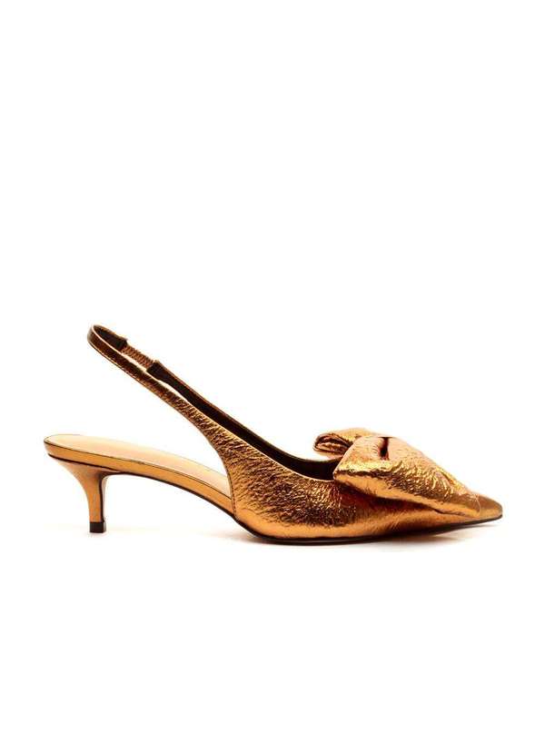 O slingback Cecconello combina elegância e conforto em um único calçado. Com uma tira que envolve o calcanhar e se prende na parte de trás, esse sapato apresenta um salto baixo que proporciona estabilidade e facilidade ao caminhar. O destaque está no laço na parte frontal do sapato, adicionando um toque de charme e feminilidade ao design. Esse slingback é versátil o suficiente para ser usado em diversas ocasiões, desde o dia-a-dia até eventos mais formais, garantindo estilo e conforto ao longo do dia. Características Material: Couro ( Amassado) Cor: Bronze Altura do salto: 4,5cm .