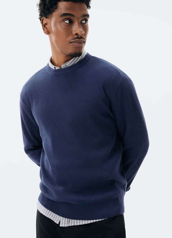Hering - Sueter Masculino Regular em Trico Canelado Azul