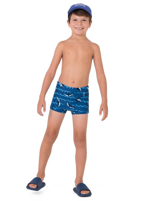 Malwee Kids - Sunga Boxer Tubarões Uv50 Azul