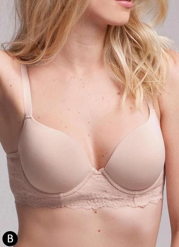 Características: Sutiã com aro e bojo. Confeccionado em microfibra encorpada com Lycra® macia, leve e extremamente confortável. Acomoda, modela e realça o colo do busto na medida ideal. Laterais duplas com formato mais largo para maior sustentação. Base e laterais delicadas em renda com temática floral. Alças reguláveis, costas com fecho triplo com 3 colchetes e 3 estágio de regulagem. Outros Detalhes: Taça B. Composição: Tecido: 75% Poliamida e 25% Elastano. Forro: 100% Poliéster. Renda: 87% Poliamida e 13% Elastano.