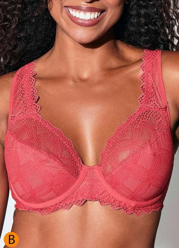 Características: Sutiã com Aro e Bojo Exclusiva renda jacquartrônica Bojo forrado com a microfibra Ketten, com aro e modelagem mais aberta para encaixar os seios perfeitamente Proporciona em efeito forte de redução e sustentação Decote em renda com reforço de elástico microfibra, para melhor aderência Acabamento cava em elástico sanduíche dobrável biodegradável Entremeio bloqueado, base em renda dupla e cós com elástico mais largo Acabamento em elástico sanduíche Alças reguláveis nas costas Ideal para seios pequenos, médios, grandes e extra grandes Outros Detalhes: Taça B Composição: Renda: 84% Poliamida e 16% Elastano Forro: 76% Poliamida e 27% Elastano