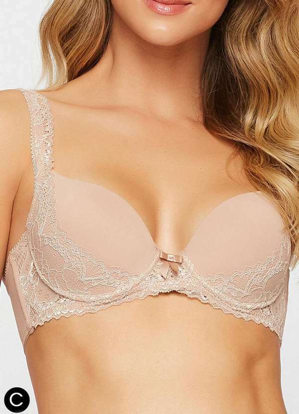 Características: Sutiã com aro e sem bojo Alças fixas Com recorte de renda no bojo e alças Possui laterais largas e barbatanas embutidas Sustentando sem marcar no corpo Bojo com enchimento no tamanho 42 Outros Detalhes: Taça C Composição: Corpo: 92% Poliamida e 08% Elastano Renda: 86% Poliamida e 14% Elastano Forro: 100% Poliéster
