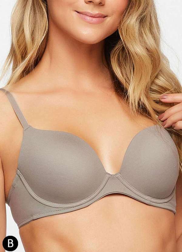 Características: Sutiã com aro e bojo Bojos de espuma desenvolvidos na profundidade ideal para vestir perfeitamente cada tamanho Base reforçada, aros e barbatanas laterais para maior sustentação e conforto Fecho e alças reguláveis com fecho clique nas costas Outros Detalhes: Taça B Composição: Nirvana: 81% Poliamida e 19% Elastano Forro: 100% Algodão