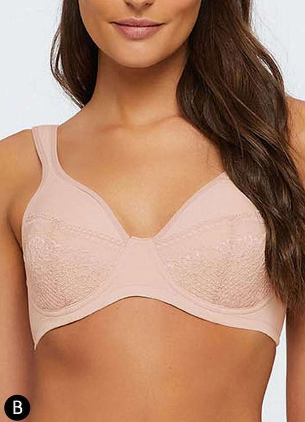Características: Sutiã com aro e sem bojo Detalhes em renda exclusiva no busto Alças largas fixas e com regulagem para maior conforto e sustentação Fecho em colchete nas costas Laterais largas garantem maior conforto e melhor vestibilidade Atende tamanho Plus Size Outros Detalhes: Taça B Composição: Corpo: 74% Poliamida, 26% Elastano Renda: 85% Poliamida, 15% Elastano Forro Corpo: 93% Poliamida, 07% Elastano Forro Frente Central: 100% Algodão