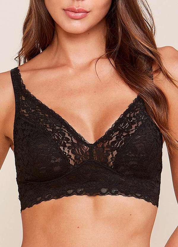 Características: Sutiã modelo triângulo em renda Frente com alças em renda e costas com alças reguláveis em elástico macio Busto com forro de tule para diminuir a transparência Com estrutura interna que substitui o aro e promove um encaixe perfeito no busto Laterais e costas mais largas Ideal para média sustentação Colchete com 4 regulagens Composição: 90% Poliamida e 10% Elastano Forro: 89% Poliamida e 11% Elastano