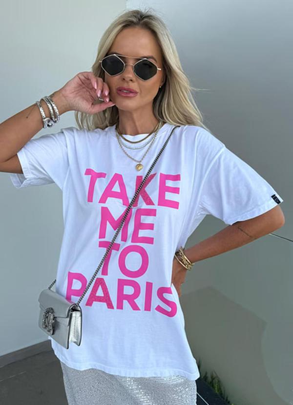 Amo Brand - T-Shirt Alongada Take Me To Paris Branca