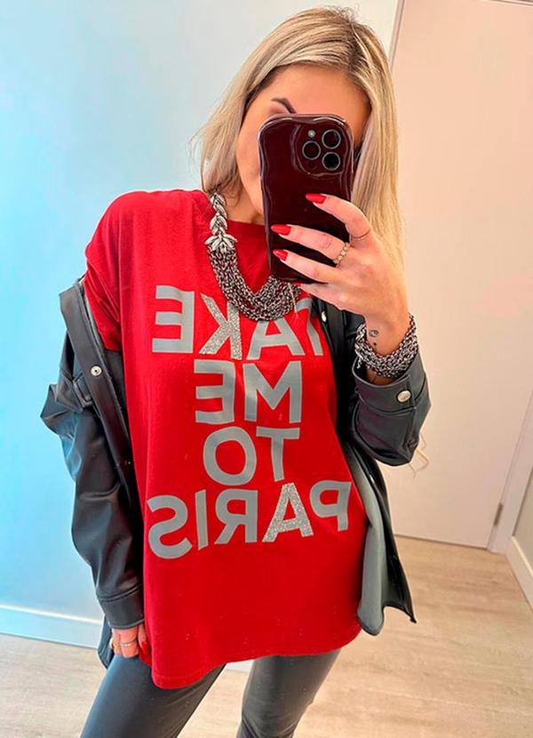 Amo Brand - T-Shirt Alongada Take Me To Paris Cereja