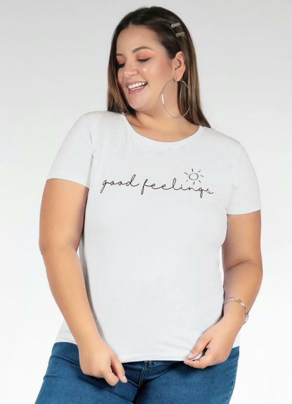 Marguerite - T-Shirt com Estampa Frontal Branca Plus Size