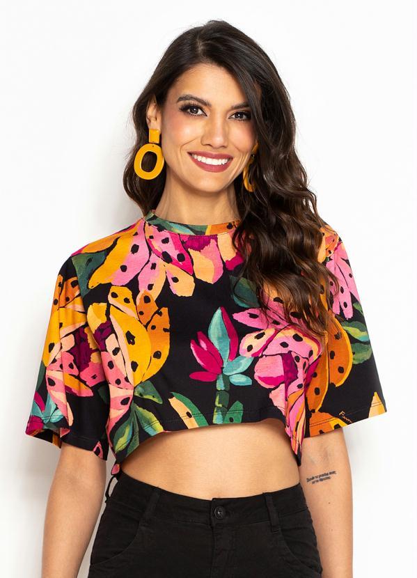 Farm - T-Shirt Cropped Flor de Banana Preto