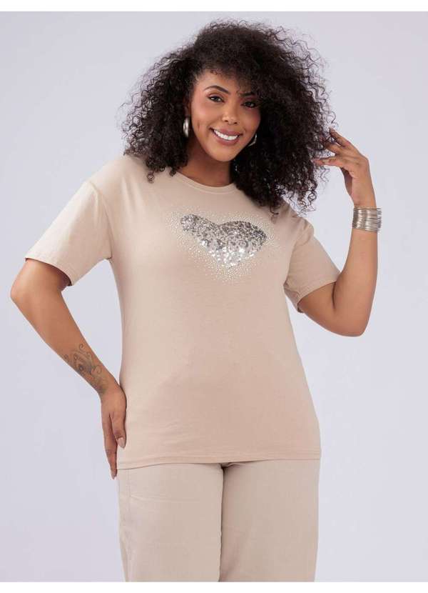 Susie Modas - T-Shirt Detalhes Paetê Bege