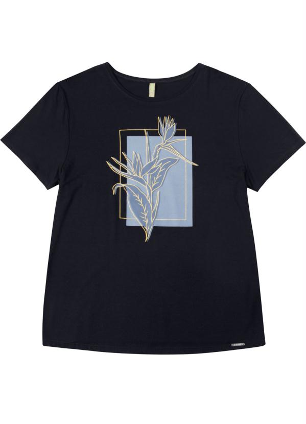Cativa - T-Shirt em Viscose Estampada com Glitter Preto
